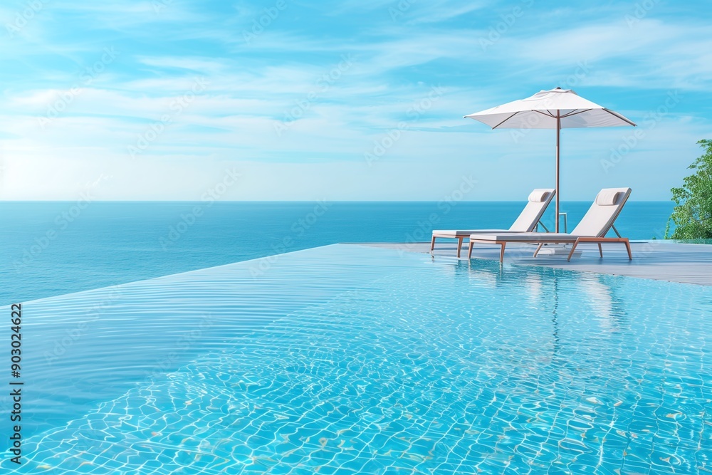 Obraz na płótnie Canvas - Beautiful luxury swimming pool on sea view and umbrella and chair in hotel resort.