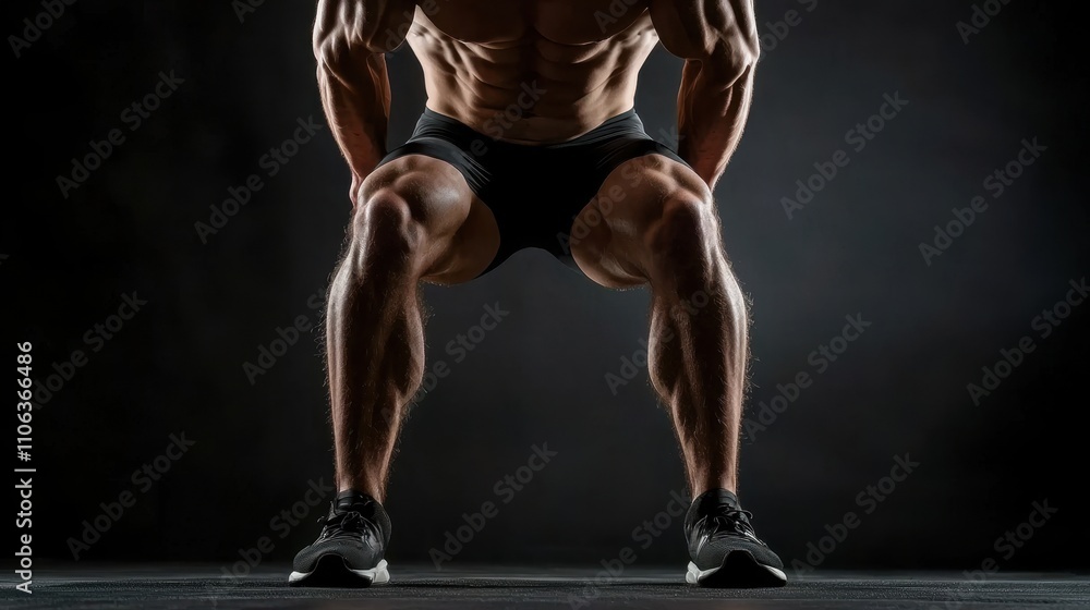 Obraz na płótnie Canvas - A man with a muscular body is posing with his legs spread apart.