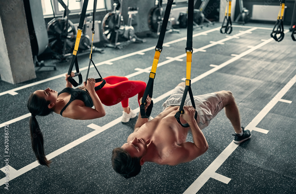 Obraz na płótnie Canvas - Sporty couple in gym.