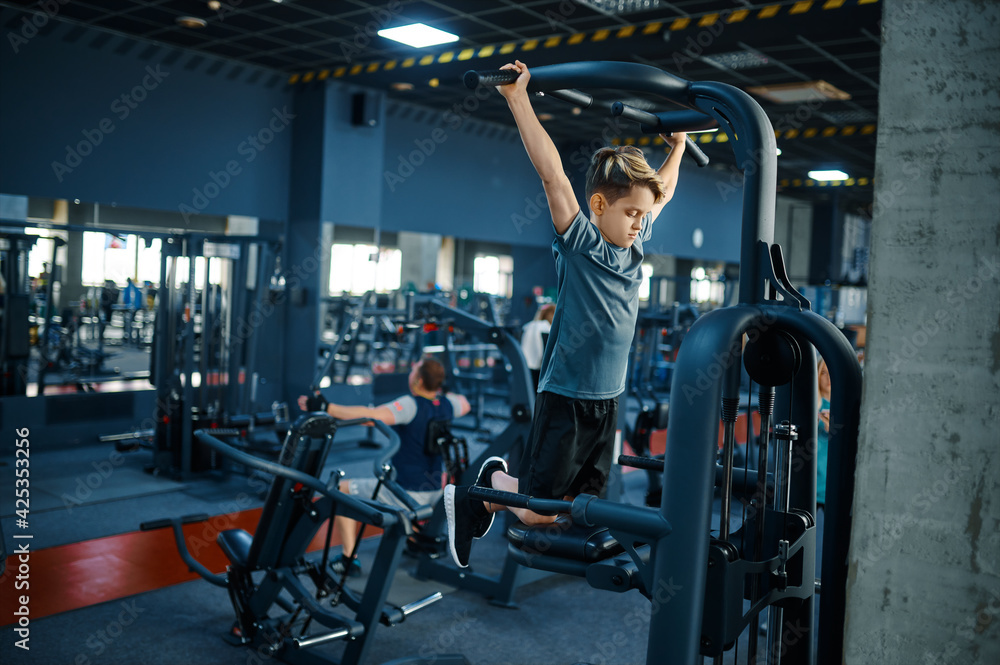 Obraz na płótnie Canvas - Boy on exercise machine, fitness training in gym.