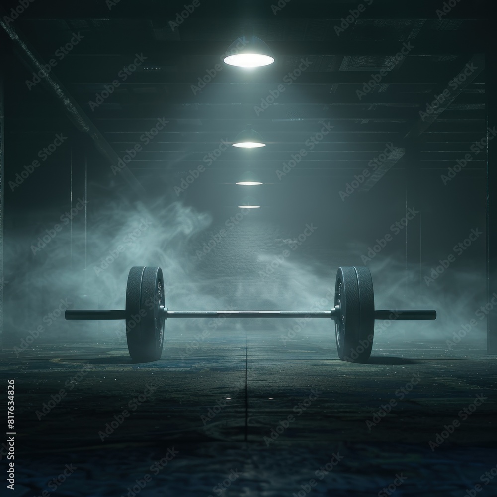 >Obrazy na płótnie Canvas>Iron barbells on a dark, smoky cinematic background, facilities in the gym for sports training function to increase bone density, shoulder muscles and also triceps
