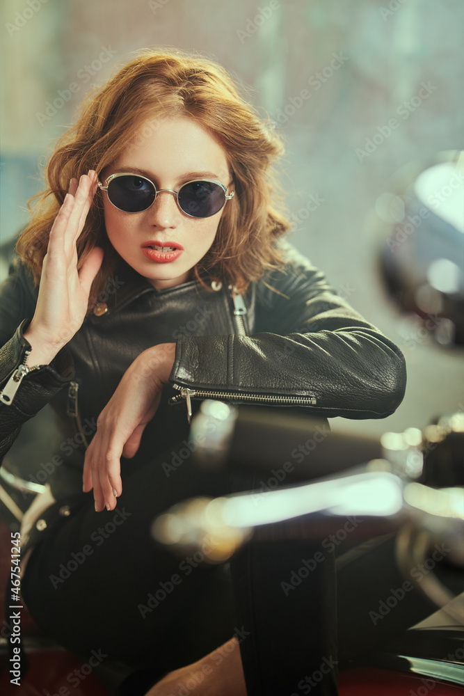 Obraz na płótnie Canvas - stylish girl in a garage.