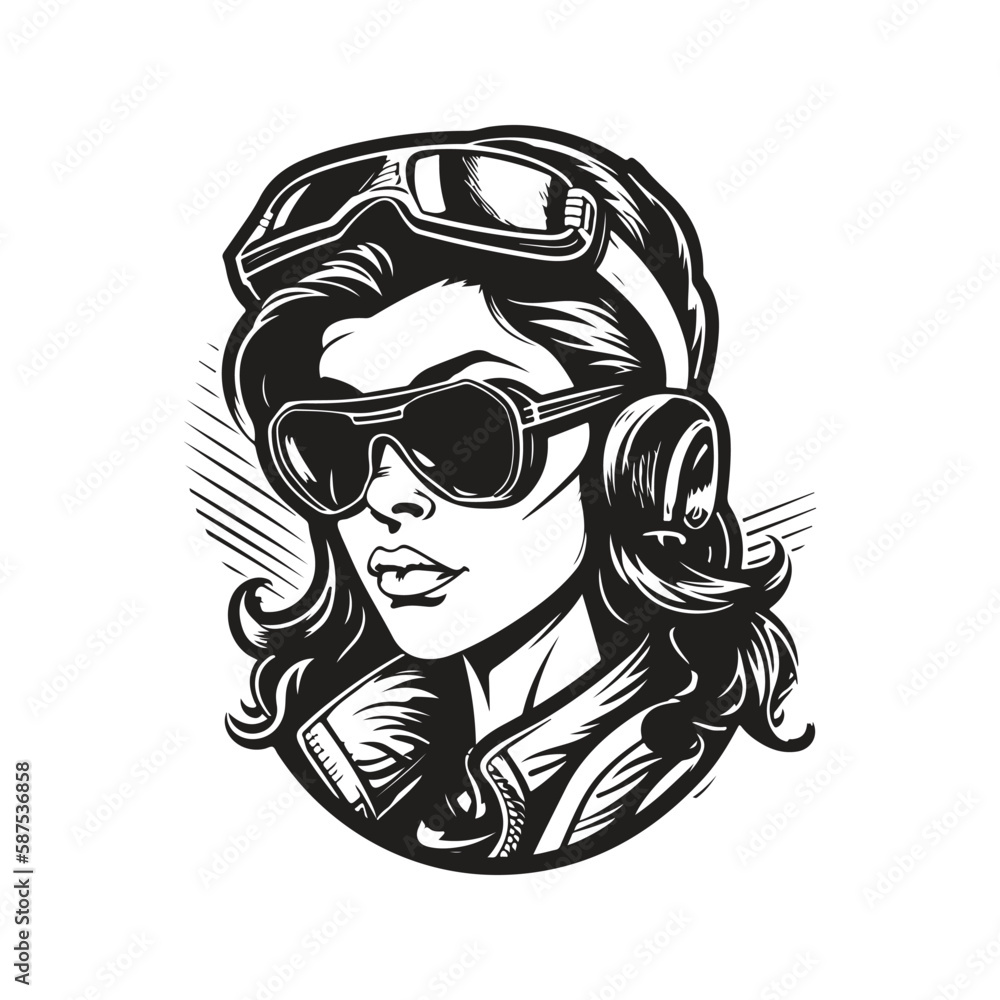Obraz na płótnie Canvas - badass biker girl, logo concept black and white color, hand drawn illustration.