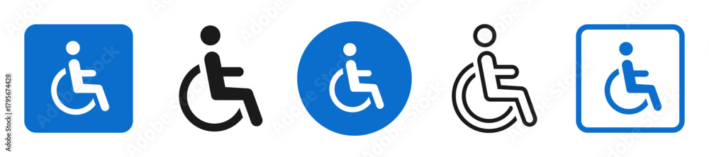 >Obrazy na płótnie Canvas>Wybrane dla Ciebie>Wheelchair icon set. Handicapped, accessible, impairment, mobility, handicap. Disabled symbol on white background - stock vector.