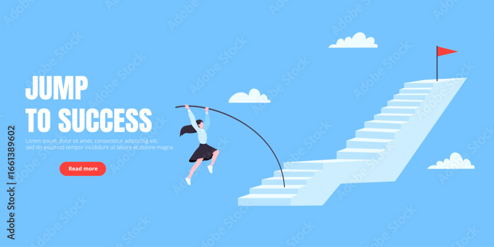 >Obrazy na płótnie Canvas>Wybrane motywy - zobacz więcej !>Pory roku>Success career ladder steps path challenge with business goal achievement flag goal on the top of it. Business concept flat vector illustration. Office person running onto success career steps.