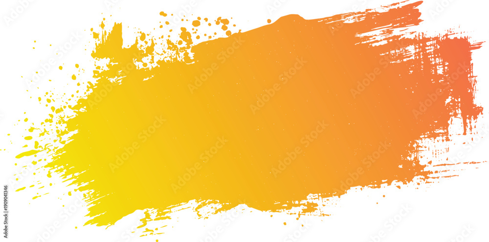 Obraz na płótnie Canvas - Yellow orange gradient paint splash brush stroke with splatter effect on white background.