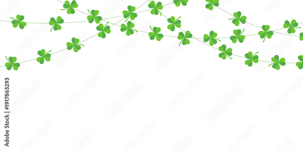 Obraz na płótnie Canvas - Green clover garland, isolated on a transparent background. Perfect for St. Patrick's Day designs. PNG and Vector illustration.