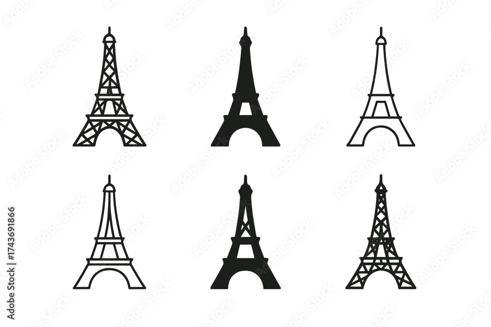 Obraz na płótnie Canvas - Architectural Logo Variations. The history of architecture and landmark buildings. Set Logo of The history of architecture and landmark buildings: Eiffel Tower.