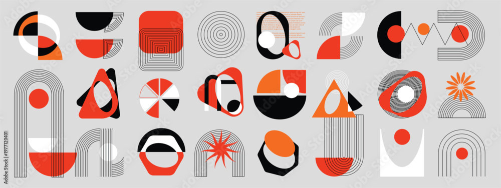 Obraz na płótnie Canvas - Hand drawn abstract minimal element mid century vector set. Aesthetic contemporary stripe line art, geometric shape in monochrome. Art form design for wall art, decoration, wallpaper..
