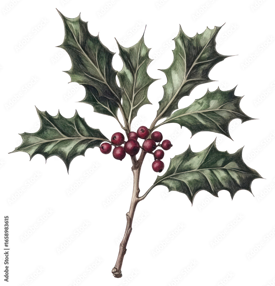 Obraz na płótnie Canvas - PNG A christmas holly illustration traditional vintage..