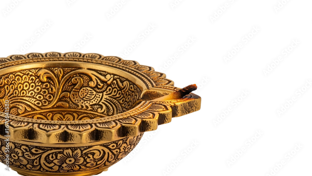 Obraz na płótnie Canvas - Diya, Diwali, Deepavali, Festival of Lights, oil lamp, Hindu festival, puja, worship, isolated on white, light, hope, spiritual, auspicious, traditional, brass, ornate, carved, Indian lamp, prayer, fa.