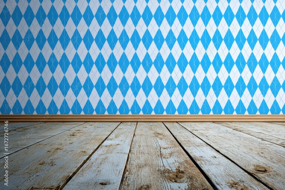Obraz na płótnie Canvas - Empty room with bavarian oktoberfest decoration and wooden floor, perfect for backgrounds and product placement.