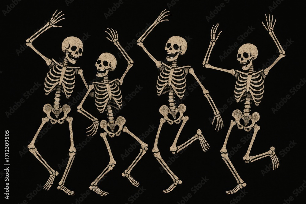 Obraz na płótnie Canvas - Dancing skeletons joyful celebration.