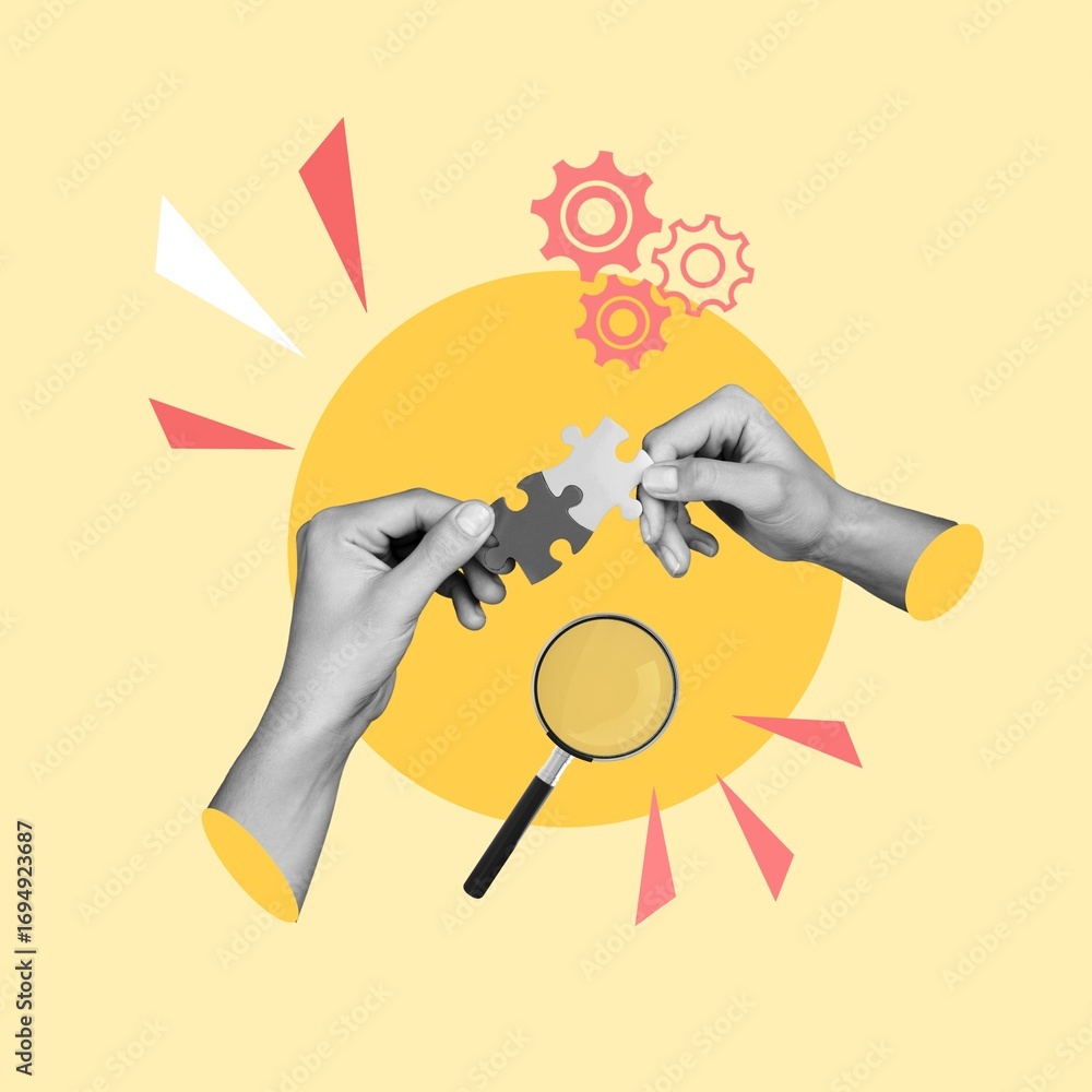 Obraz na płótnie Canvas - People hands holding puzzle, symbolizing teamwork,.