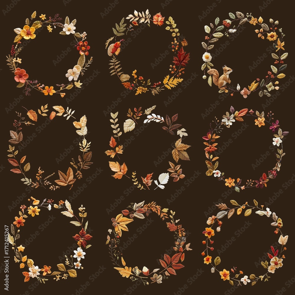 Obraz na płótnie Canvas - Autumn flower embroidery design element set.