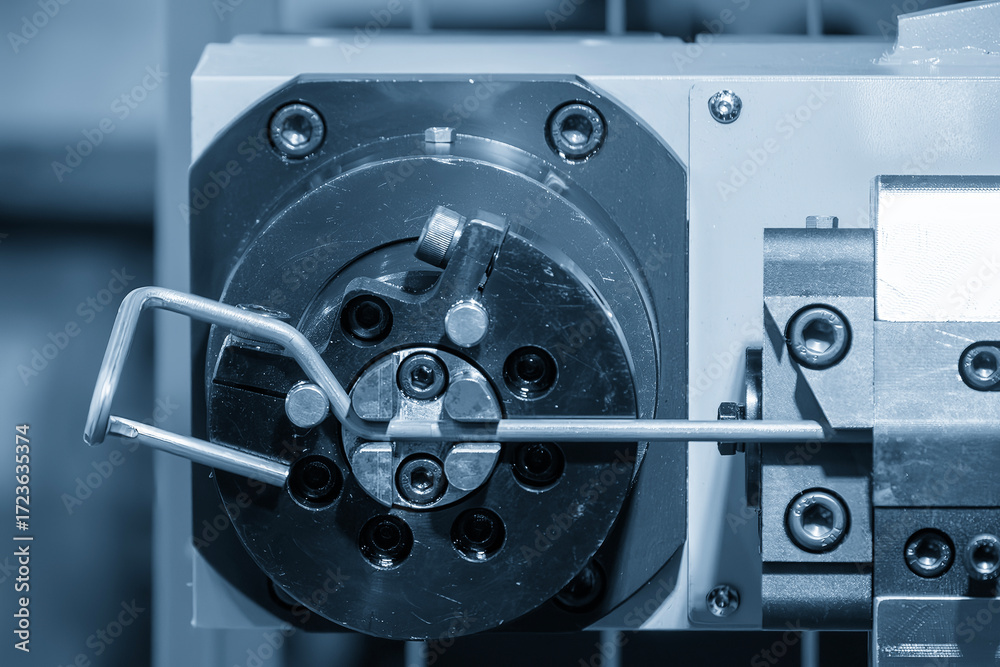 Obraz na płótnie Canvas - The steel wire forming machine in the light blue scene..
