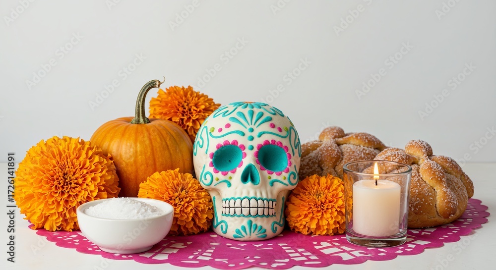 Obraz na płótnie Canvas - Traditional Mexican Day of the Dead ofrenda still life arrangement..