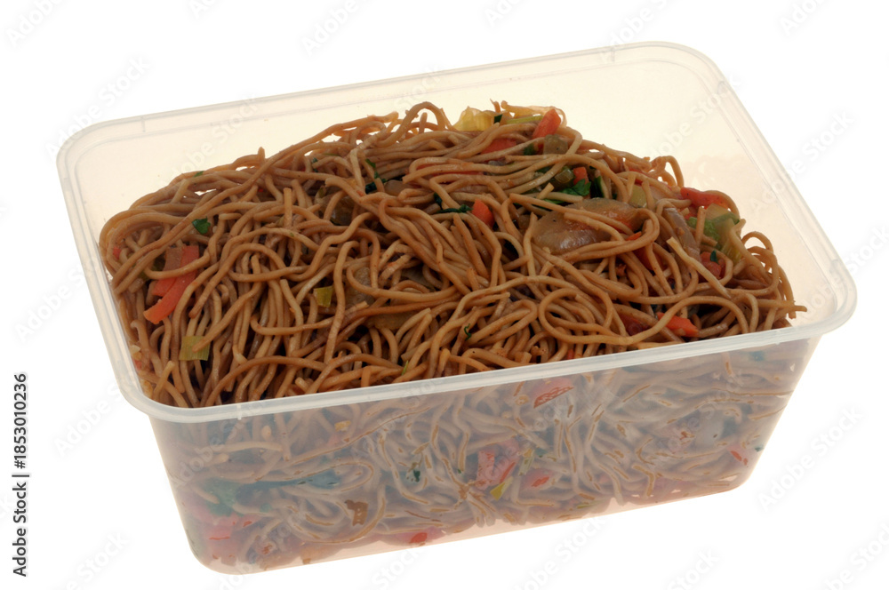 Obraz na płótnie Canvas - Barquette en plastique de nouilles sautées en gros plan isolée sur fond blanc.