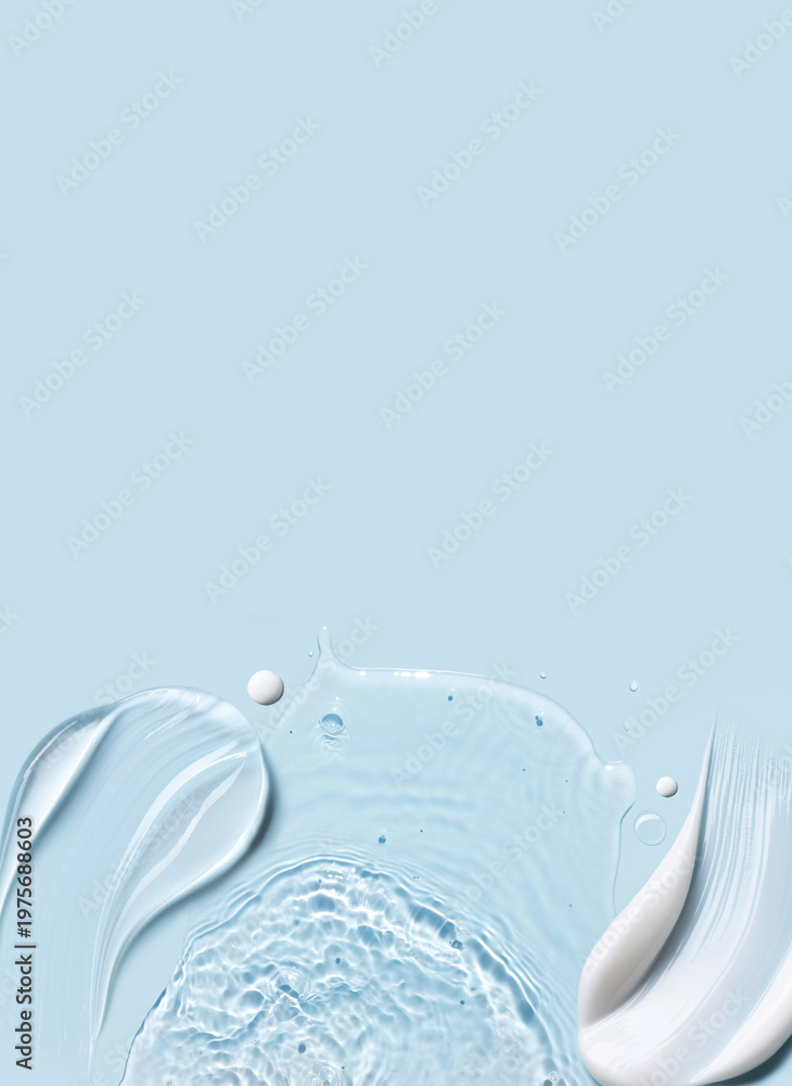 Obraz na płótnie Canvas - cosmetic cream smears, smooth and shiny texture, water texture ripple wave clean transparent water drops abstract blue background.