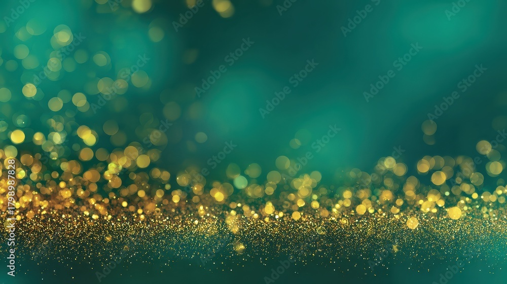 Obraz na płótnie Canvas - abstract blur bokeh banner background gold bokeh on defocused emerald green background.