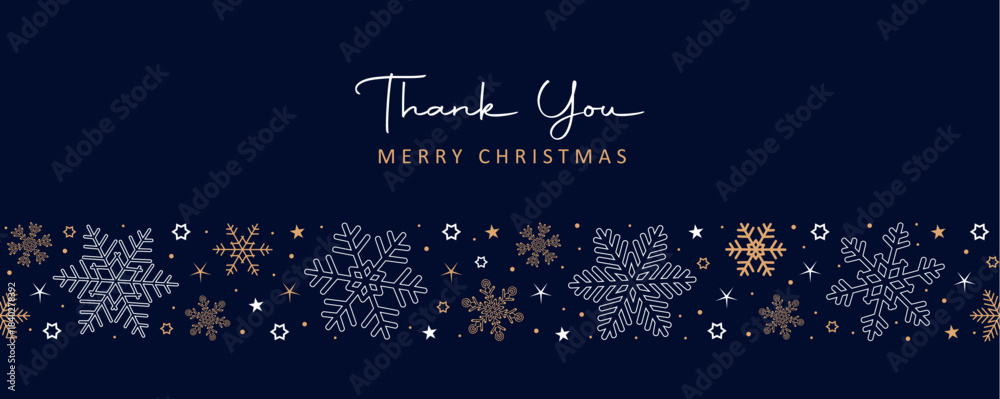 Obraz na płótnie Canvas - thank you christmas greeting card with seamless pattern snowflake border vector illustration.