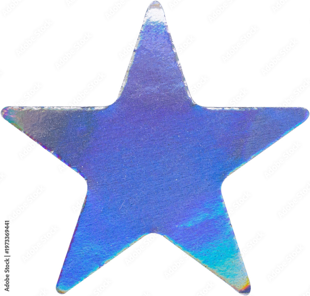 Obraz na płótnie Canvas - Holographic star sticker with iridescent foil texture isolated on white background.