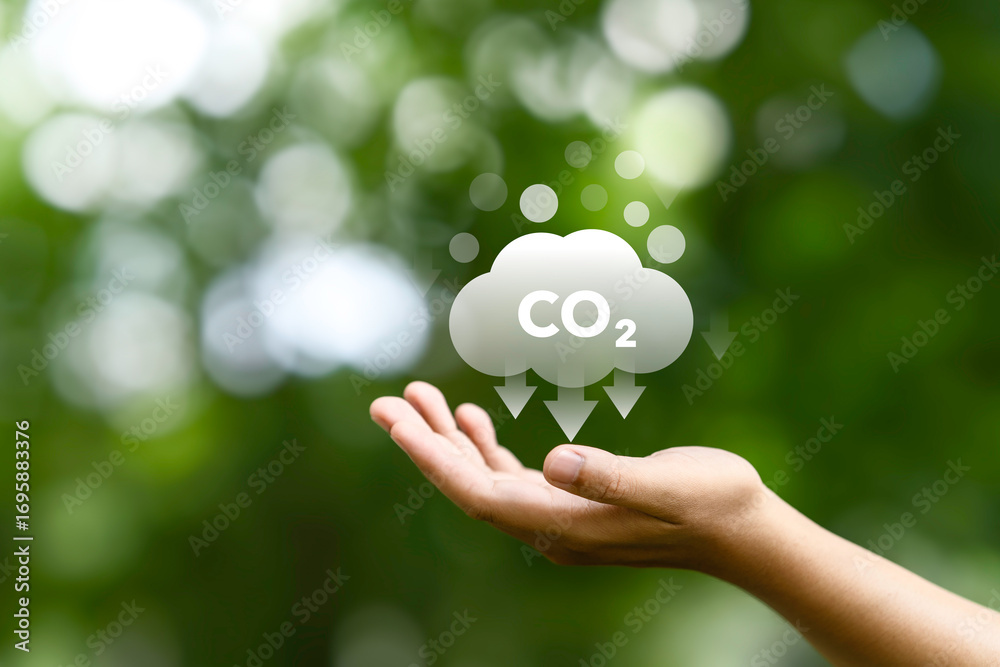 Obraz na płótnie Canvas - Reduce CO2 emissions to limit global warming and climate change. Reduce levels of greenhouse gas, decarbonize industry, energy and transport. Carbon neutral and net zero concept..
