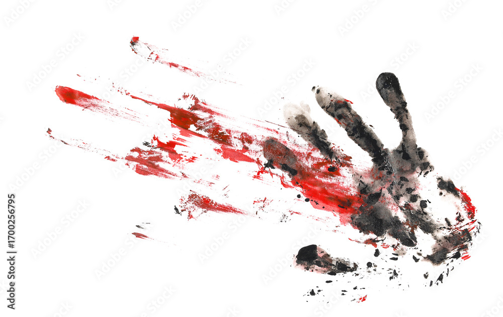 Obraz na płótnie Canvas - Concept of fear, bloody hand slides down the wall, gore isolated on white, clipping path .