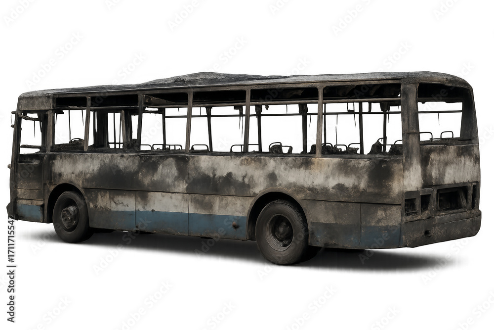 Obraz na płótnie Canvas - Burned bus showing destruction and damage with transparent background.