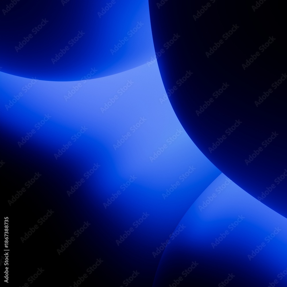 Obraz na płótnie Canvas - Abstract background with blue neon light glowing amongst the dark spheres, simple geometric wallpaper. Minimalist 3d illustration.