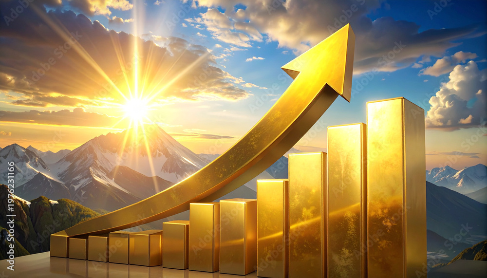 Obraz na płótnie Canvas - Golden arrow pointing upward.
