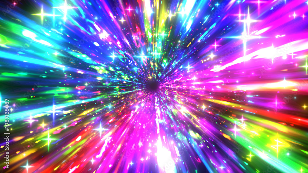 Obraz na płótnie Canvas - キラキラしたカラフルな集中線のエフェクト背景.