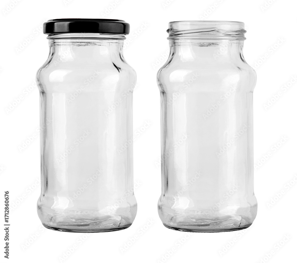 Obraz na płótnie Canvas - Empty glass jars with and without lid.