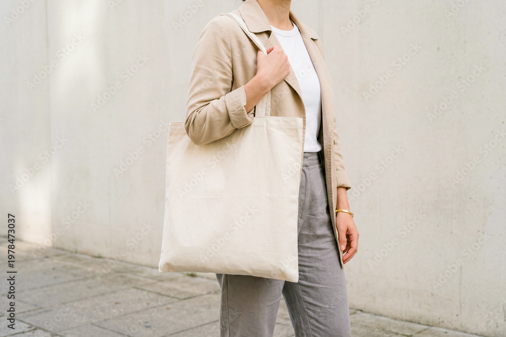 Obraz na płótnie Canvas - トートバックとカジュアルな女性.