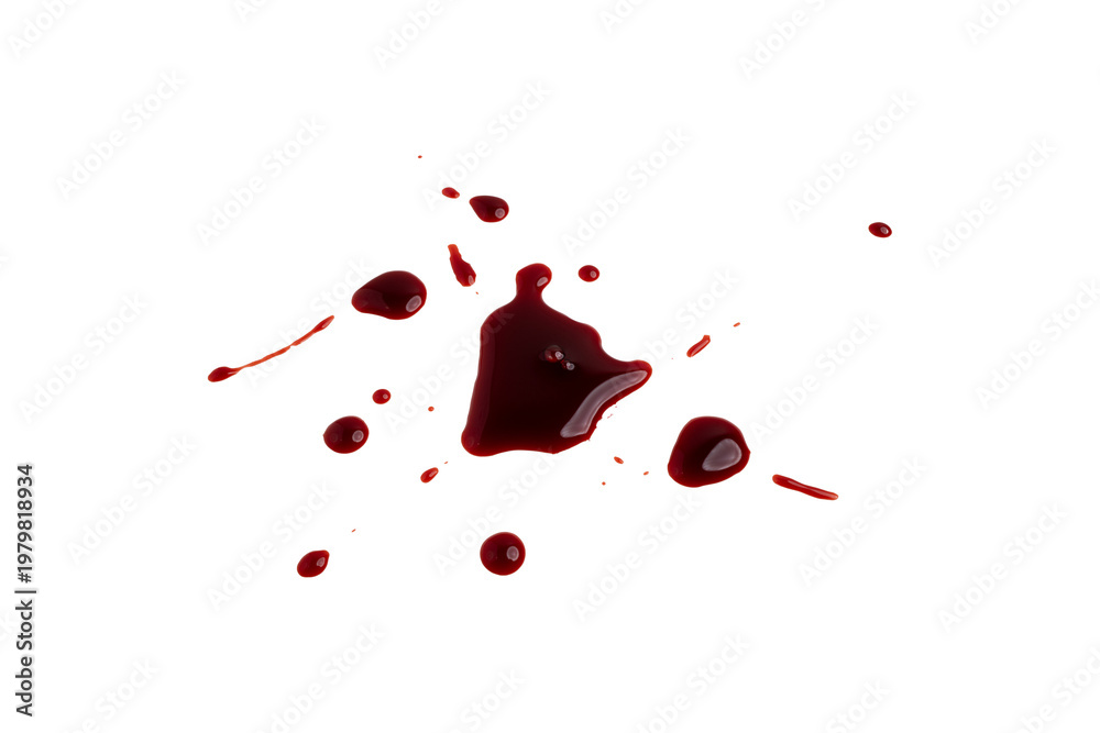 Obraz na płótnie Canvas - blood dripping against isolated with clipping path on white background. blood splash with drip effect, drops and streaks.