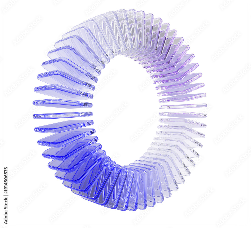 >Obrazy na płótnie Canvas>Wybrane motywy - zobacz więcej !>Lew>3d holographic glass circle array of transparent square plates with purple blue gradient. Abstract geometric ring, crystal round wheel or circular data graph, isolated graphic element