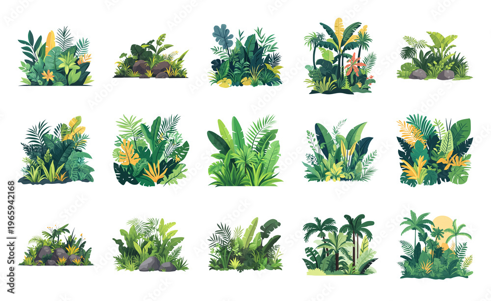 Obraz na płótnie Canvas - PNG Lush tropical plant illustrations collection on transparent background.