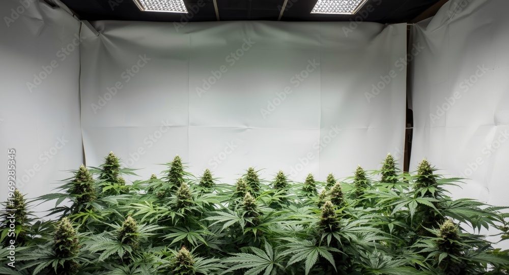 Obraz na płótnie Canvas - White backdrop illustrating therapeutic marijuana ruderalis cultivation.