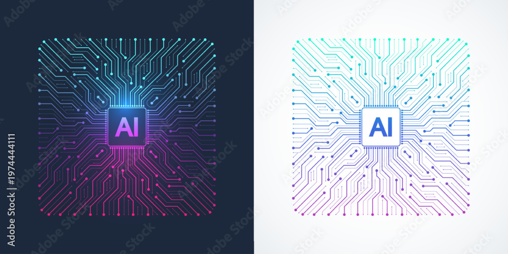 Obraz na płótnie Canvas - Modern handmade vector icon, sign, logo circuit line style in the Artificial intelligence concept. Set AI processor icon flat design. Motherboard digital chip AI..