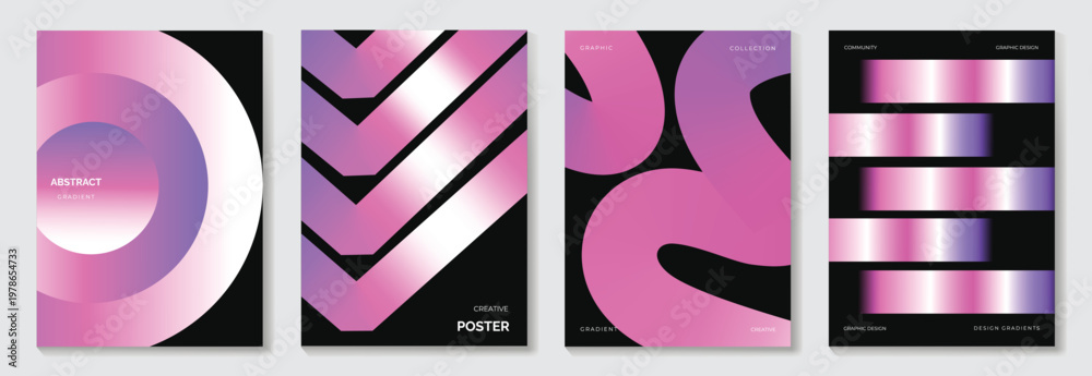 Obraz na płótnie Canvas - Abstract gradient poster background vector set. Minimalist style cover template with vibrant perspective 3d geometric prism shapes collection. Ideal design for social media, cover, banner, flyer..