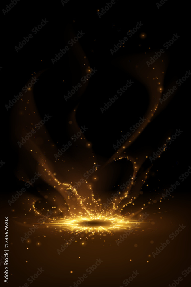 Obraz na płótnie Canvas - Golden light stage with sparks on black background.