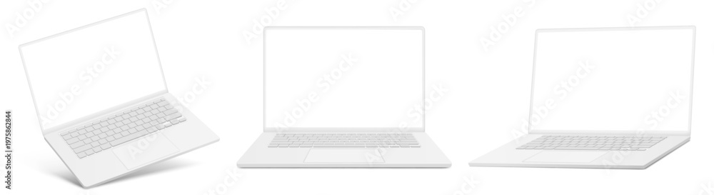 Obraz na płótnie Canvas - White Clay Laptop Mockup Collection in Modern Clean Style With Blank Screen and Soft Removable Shadow isolated on White Background Vector.