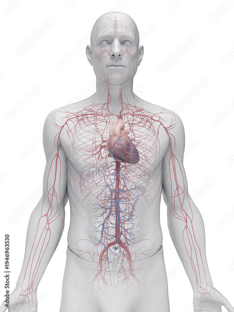 Obraz na płótnie Canvas - Detailed Anatomical View Showing The Arteries Of A Male Body.
