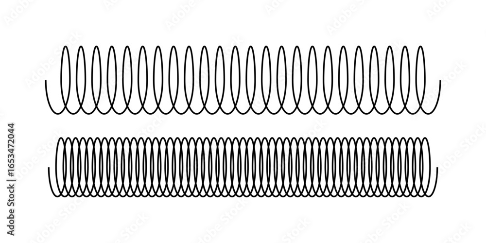 >Obrazy na płótnie Canvas>Wybrane motywy - zobacz więcej !>Maki>Black coil, shock absorber or extension spring shapes isolated on white background. Metal wire spirals. Parts of car suspension. Industrial equipment element. Vector graphic illustration.