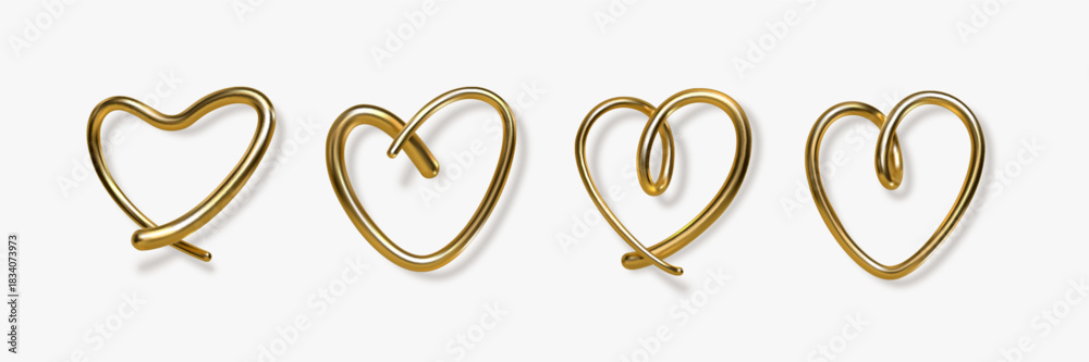 Obraz na płótnie Canvas - 3d gold hand written heart with shadow on white background. Decorative elements for Valentines day or wedding design. Love sign and symbol. Vector illustration..