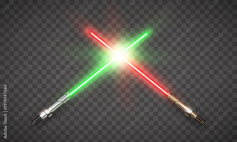 Obraz na płótnie Canvas - New realistic design red and green neon crossed swords isolated on transparent background. Vector illustration.