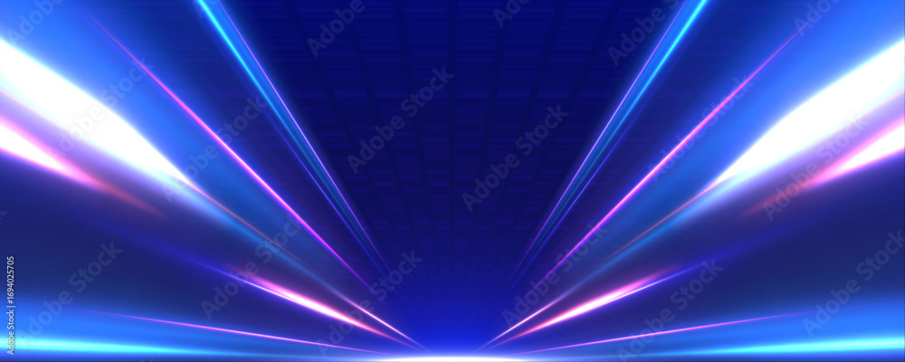>Obrazy na płótnie Canvas>Wybrane motywy - zobacz więcej !>Mapy>Panoramic high-speed technology concept with abstract light trails and glowing neon colors in blue, yellow, and orange, representing the rapid motion and energy in a futuristic environment.