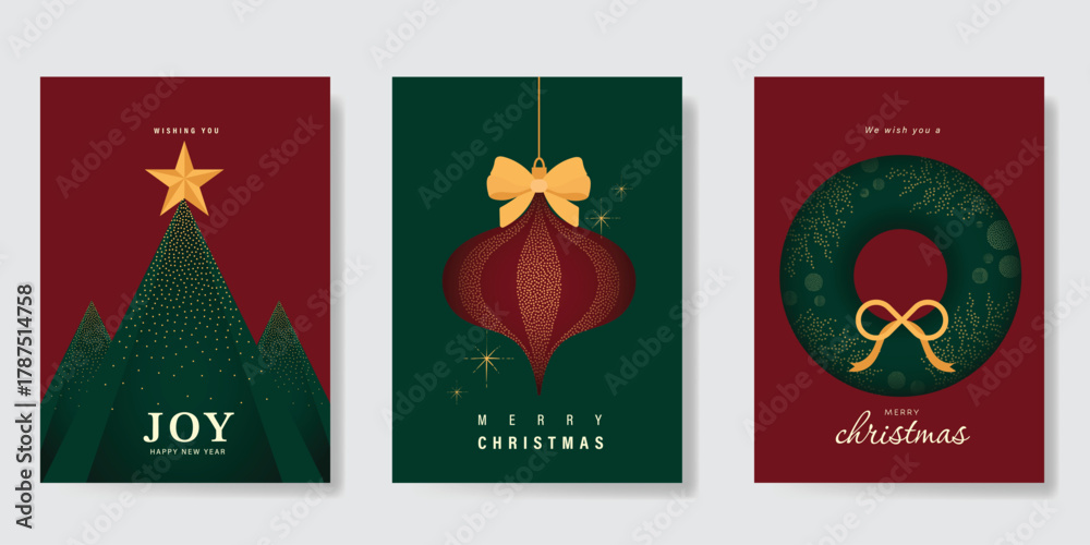 Obraz na płótnie Canvas - Christmas Luxury gold invitation card design vector. Christmas pine leaves, snowflake with gold foil and spot texture on navy blue background. Design illustration for cover, print, poster, ads..