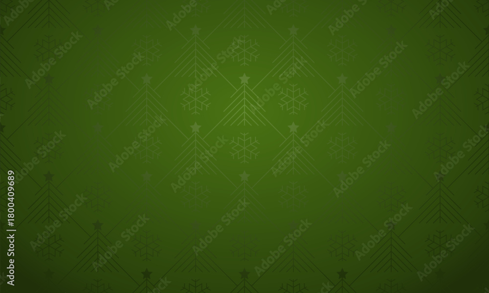 Obraz na płótnie Canvas - Vector green linear geometric winter Christmas tree and snowflakes pattern silk background. Star, spruces and snow flakes design wrapping paper or satin fabric brocade texture.