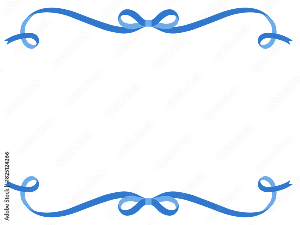 Obraz na płótnie Canvas - かわいい青いリボンのフレーム。ベクター、飾り枠.